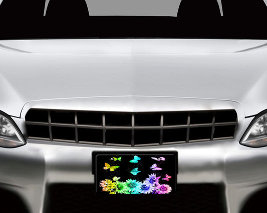Butterflies and Daisy Aluminum Vanity License Plate Car Accessory Decorative Front Plate