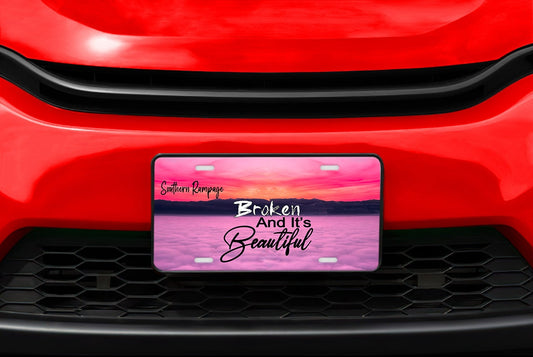 Broken and It's Beautiful Beach Sunrise Aluminum Vanity License Plate Car Accessory Decorative Front Plate