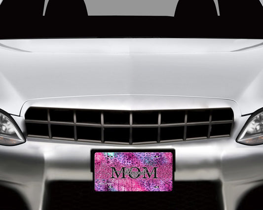 Pink Purple Leopard Print Blessed Mom Aluminum Vanity License Plate Car Accessory Decorative Front Plate