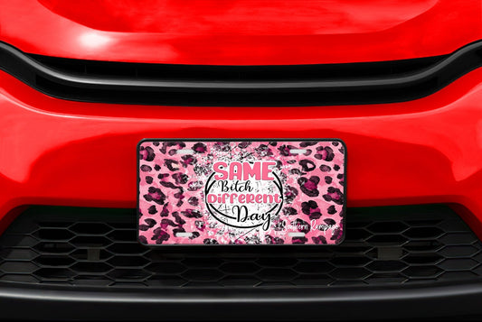 Same Bitch Different Day Leopard Print Aluminum Vanity License Plate Car Accessory Decorative Front Plate