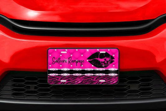 Southern Rampage Hot Pink Skull Lips Aluminum Vanity License Plate Car Accessory Decorative Front Plate