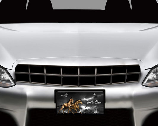 Ride the Storm Lightening Horses Aluminum Vanity License Plate Car Accessory Decorative Front Plate