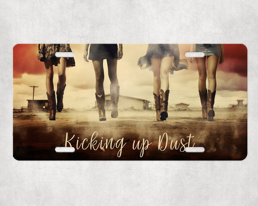 New Release Vanity Front License Plate, Cowgirls Kicking Up Dust Aluminum Vanity License Plate Car Accessory Decorative Front Plate
