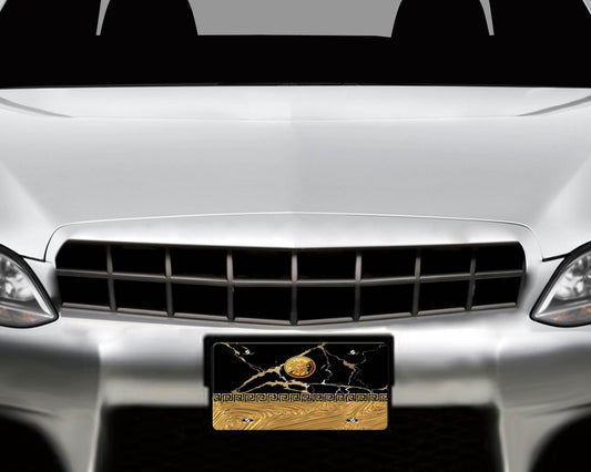 Gold and Black Greek Key Aluminum Front License Plate Vanity Plate