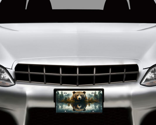 Vanity Front License Plate, Bear Reflection Aluminum Vanity License Plate Car Accessory Decorative Front Plate