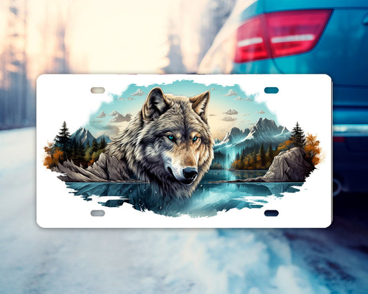 Vanity Front License Plate Glacier Lake Wolf Aluminum Vanity License Plate Car Accessory Decorative Front Plate