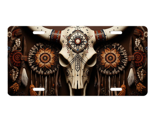 Vanity Front License Plate Cow Skull and Leather Aluminum Vanity License Plate Car Accessory Decorative Front Plate