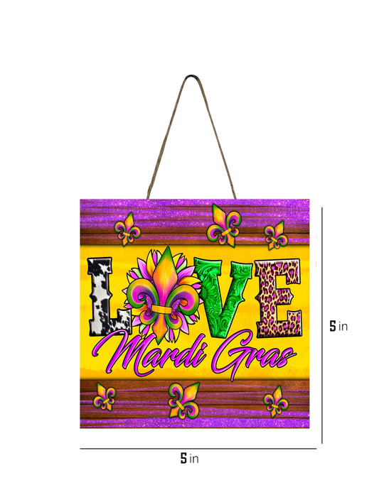 New Release, Love Mardi Gras Hanging Wall Sign Wood Home Decor, Door Hanger, Wreath Sign