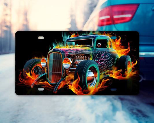 Vanity Front License Plate Hotrod Flames Aluminum Vanity License Plate Car Accessory Decorative Front Plate