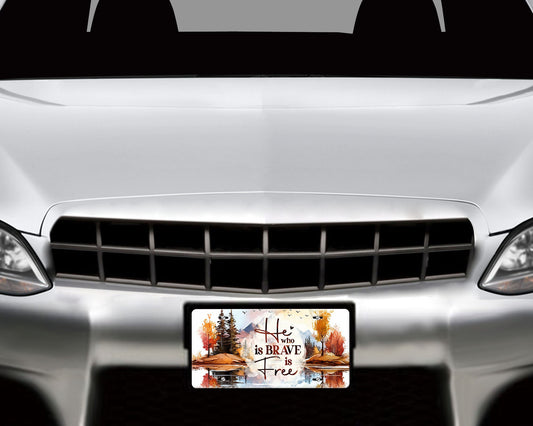 Vanity Front License Plate He Who is Brave is Free Aluminum Vanity License Plate Car Accessory Decorative Front Plate