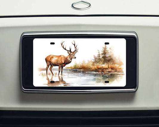 Vanity Front License Plate, Deer at River Aluminum License Plate Car Accessory Decorative Front Plate