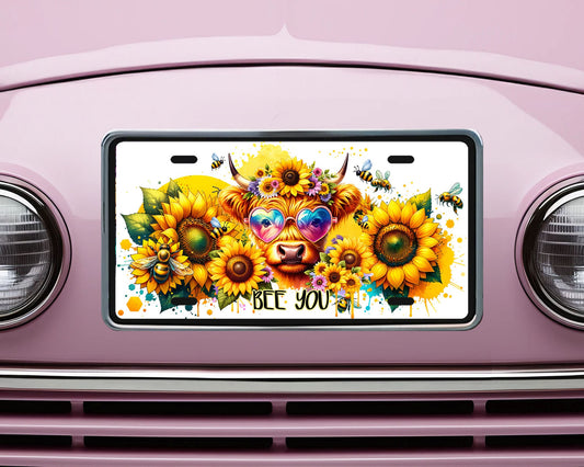 Vanity Front License Plate, Bee You Highland Cow Aluminum Vanity License Plate Car Accessory Decorative Front Plate