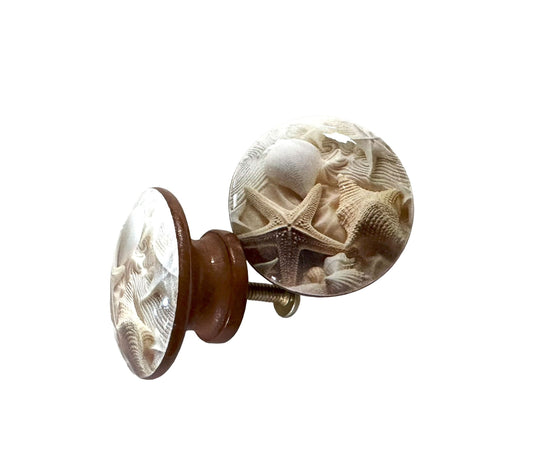 Cabinet Knobs, Set of 6 Natural Seashells Wood Cabinet Knobs, Drawer Knobs and Pulls, Kitchen Cabinet Knobs
