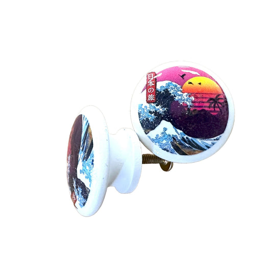 Cabinet Knobs, Set of 6 Japanese Beach Wave Wood Cabinet Knobs, Drawer Knobs and Pulls, Kitchen Cabinet Knobs