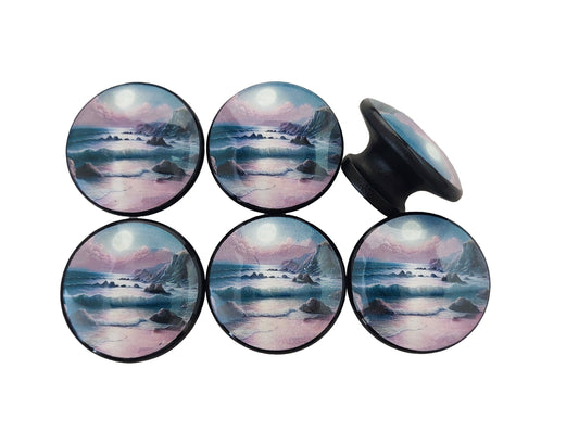 Cabinet Knobs, Set of 6 Midnight Beach Wood Cabinet Knobs, Drawer Knobs and Pulls, Kitchen Cabinet Knobs