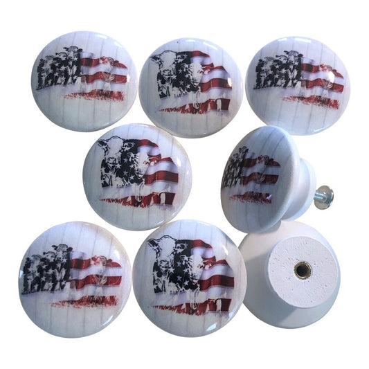 Juego de 8 pomos de madera para armario de animales de ganado americano.