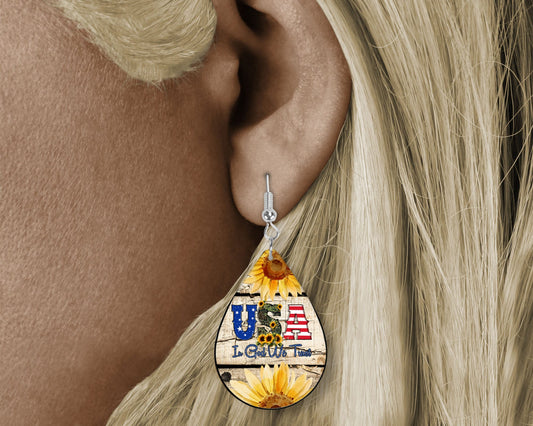 USA In God We Trust - Pendientes con estampado de madera, diseño de lágrima, hechos a mano