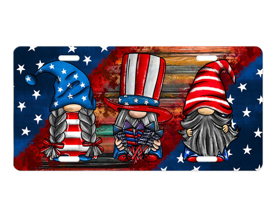 4 de julio Gnomos imprimen placa de matrícula frontal de aluminio, accesorio para automóvil, barras y estrellas, patriótico