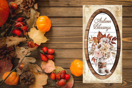 Bendiciones de otoño Floral Otoño Impreso Letrero de madera hecho a mano
