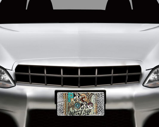 Animal Print Ora más, Preocúpate menos Placa de matrícula frontal de aluminio impresa, Accesorio para automóvil, Placa de tocador
