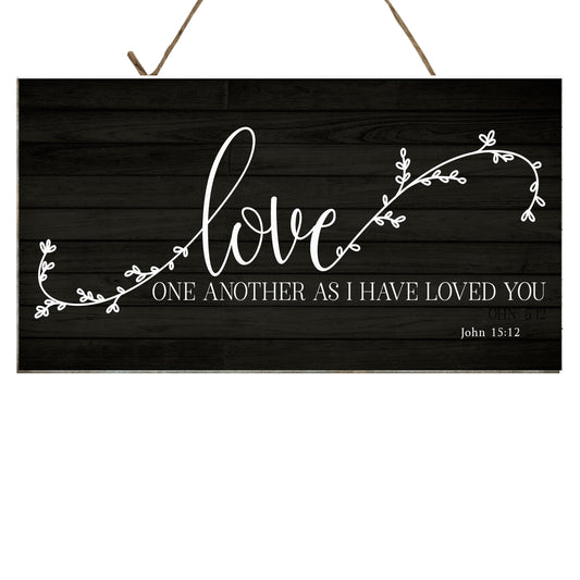 Blanco sobre negro amarnos unos a otros como te he amado letrero de madera hecho a mano impreso