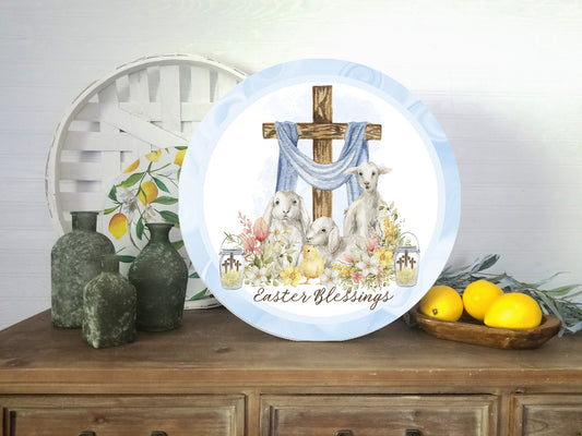 Colgador de puerta con letrero de madera hecho a mano impreso redondo de bendiciones de Pascua
