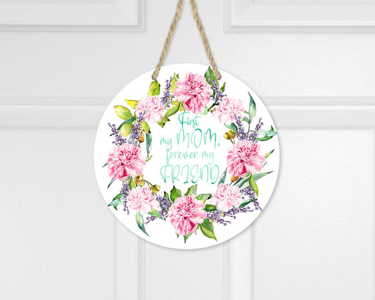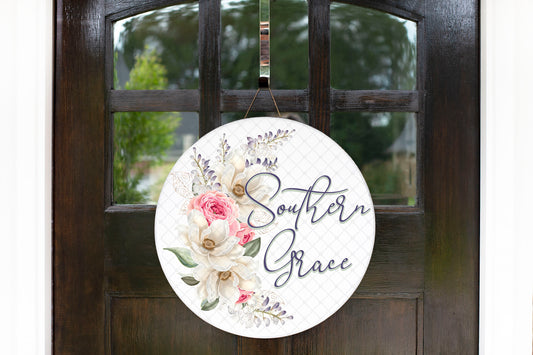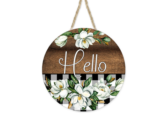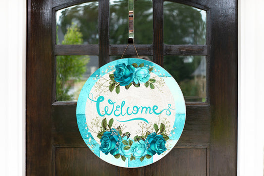 Teal Roses Welcome Round Printed Handmade Wood Sign