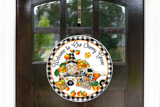 Welcome to Our Sunny Grove Round Printed Handmade Wood Sign