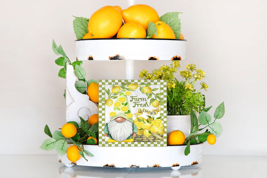 Farm Fresh Lemon Gnome Printed Handmade Wood Mini Sign