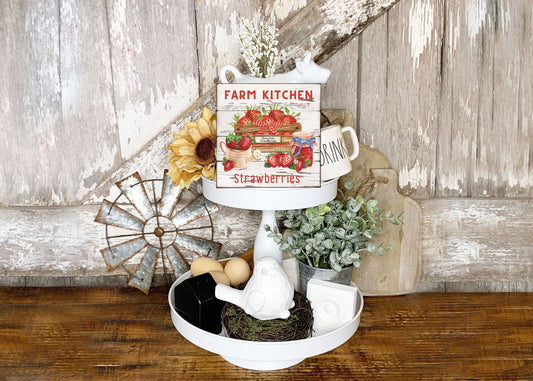 Farm Kitchen Strawberries Printed Handmade Wood Mini Sign