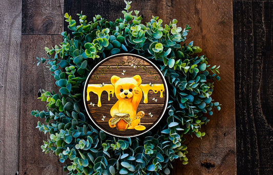 Wipe Your Paws Honey Bear Round Printed Handmade Wood Sign