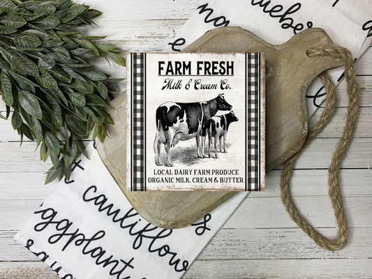 Farm Fresh Milk and Cream Printed Handmade Wood Mini Sign