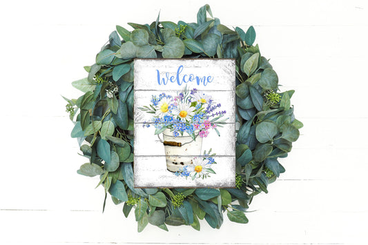 Welcome Daisy Wildflowers Printed Handmade Wood Sign