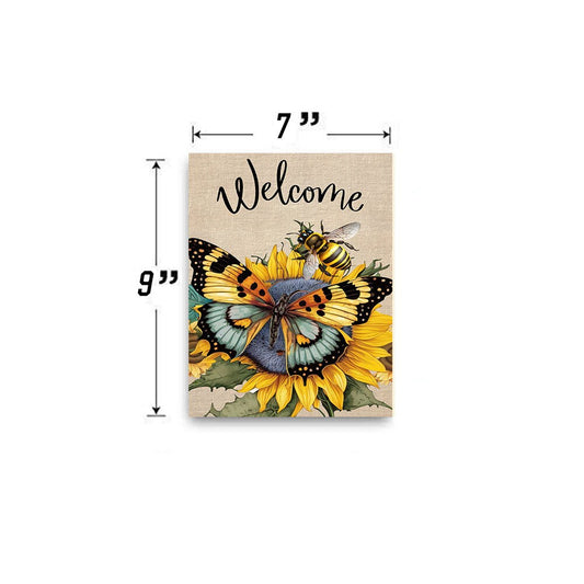 Wall Decor, Welcome Sign, Butterfly Bee Welcome Farmhouse Decor Printed Handmade Wood Sign Door Hanger Sign