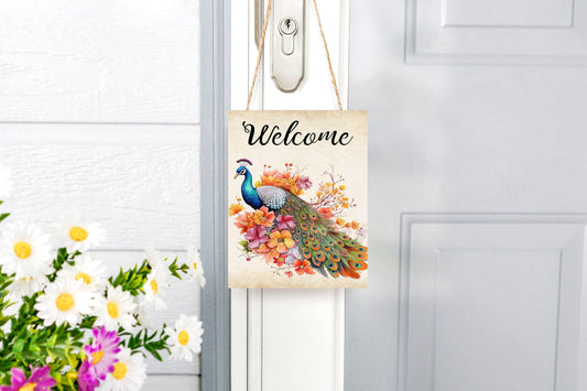 Fall Decor, Fall Sign, Welcome Fall Peacock Farmhouse Decor Printed Handmade Wood Sign Door Hanger Sign