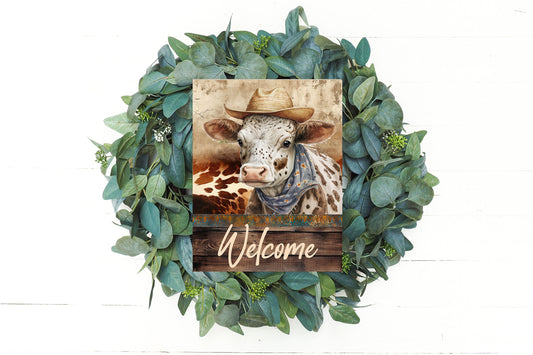Western Wall Decor, Welcome Sign, Cowboy Cow Welcome Farmhouse Decor Printed Handmade Wood Sign Door Hanger Sign