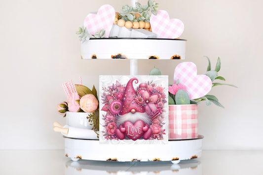Pink Jeweled Gnome Valentine's Day Wood Mini Sign, Tier Tray Decor, Kitchen Sign, Farmhouse Decor, Wreath Sign, Door Hanger