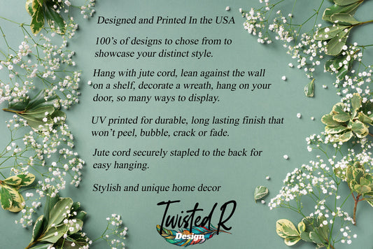 Welcome Sign, Red White and Blue Horse Welcome Round Printed Handmade Wood Sign Farmhouse Door Hanger Wreath Sign, Western Decor