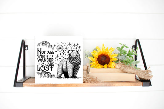 Not All Who Wander are Lost Bear Printed Handmade Wood Mini Sign