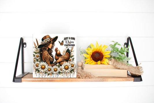 Just a Girl Who Loves Chickens Printed Handmade Wood Mini Sign