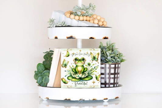 Frog Be Your Own Kind of Beautiful Printed Handmade Wood Mini Sign