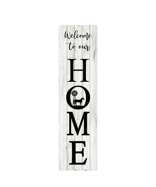 Welcome to Our Home with Horse 24 Inch Vertical Wood Print Sign