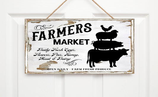 Farmers Market Animal Stack Printed Handmade Wood Sign