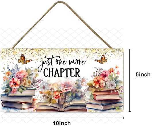 Just One More Chapter Book Lover Twisted R Design Farmhouse Wood Sign, Wood Decorative Wall Signs 5" x 10" Wood Wall Decor Hanging Wall Sign
