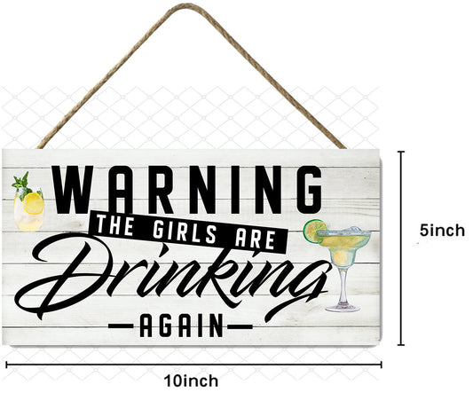 Warning Girls Drinking Again Twisted R Design Farmhouse Wood Sign, Wood Decorative Wall Signs 5" x 10" Wood Wall Decor Hanging Wall Sign