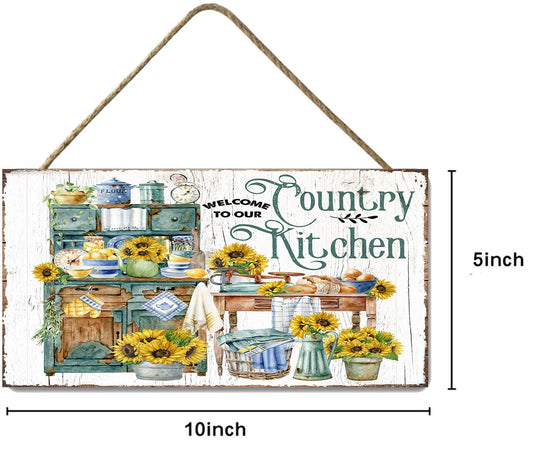 Welcome to Our Country Kitchen Twisted R Design Farmhouse Wood Sign, Wood Decorative Wall Signs 5" x 10" Wood Wall Decor Hanging Wall Sign