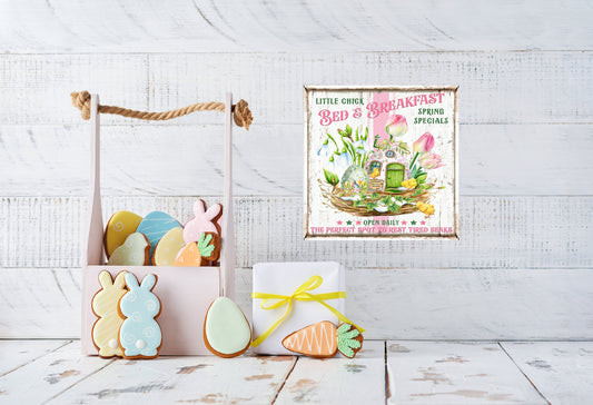 Little Chick Bed and Breakfast Easter Wood Mini Sign, Tier Tray Decor, Kitchen Sign, Farmhouse, Wreath Sign, Door Hanger