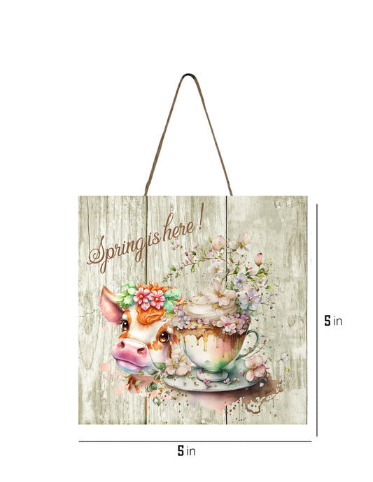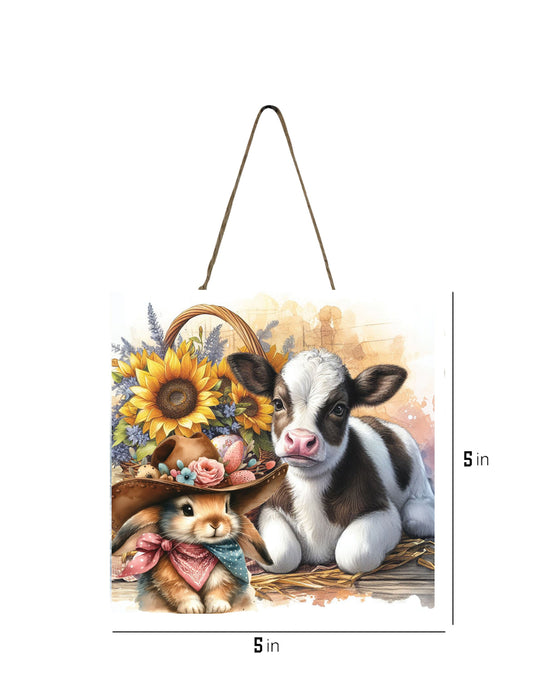 Easter Sign, Western Bunny and Cow Hanging Wall Mini Sign Wood Home Decor, Door Hanger, Wreath Sign