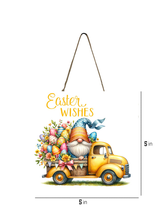Easter Sign, Easter Wishes Yellow Truck Hanging Wall Mini Sign Wood Home Decor, Door Hanger, Wreath Sign
