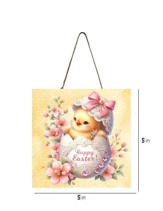 Easter Sign, Happy Easter Baby Chick Hanging Wall Mini Sign Wood Home Decor, Door Hanger, Wreath Sign